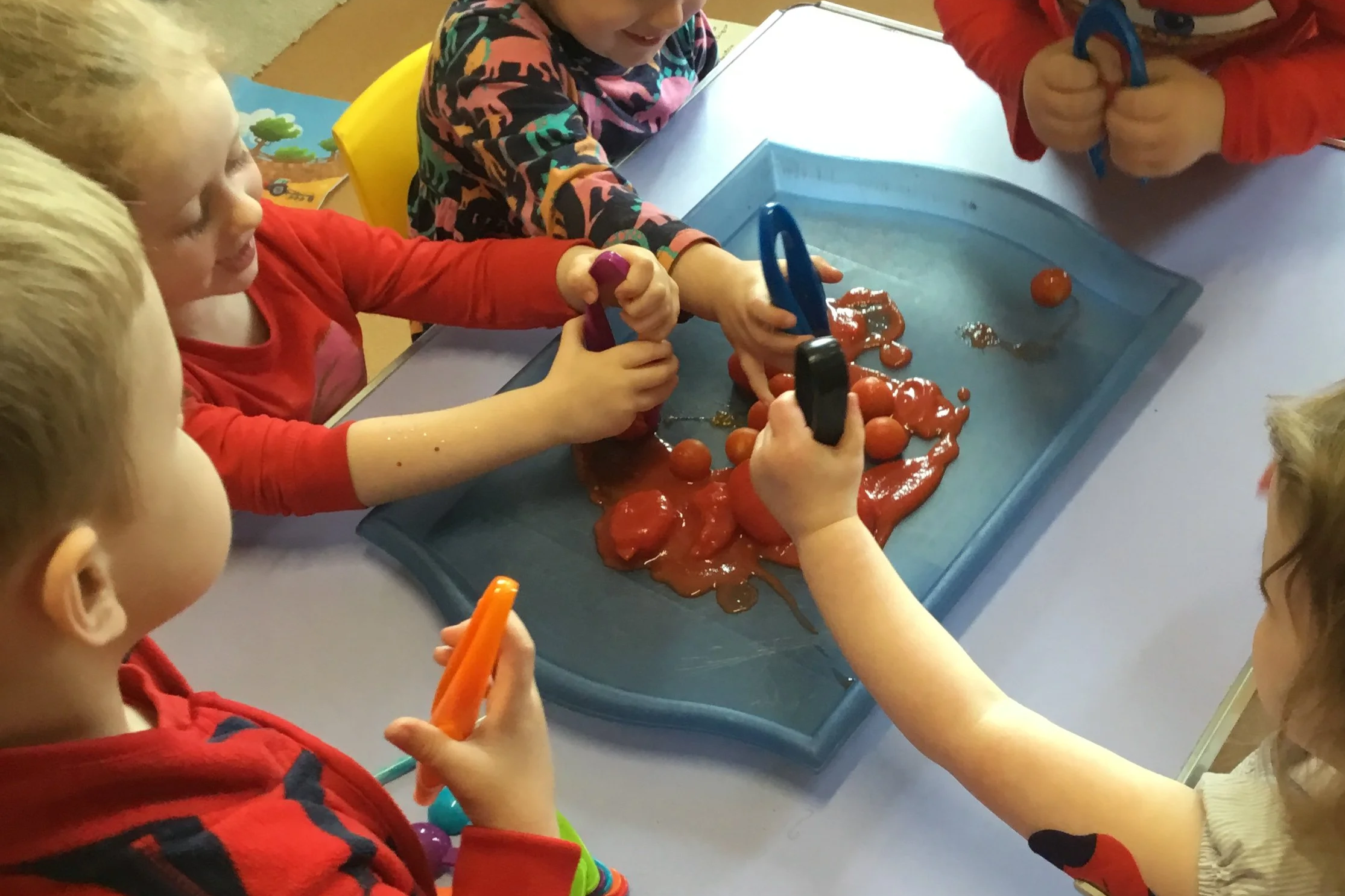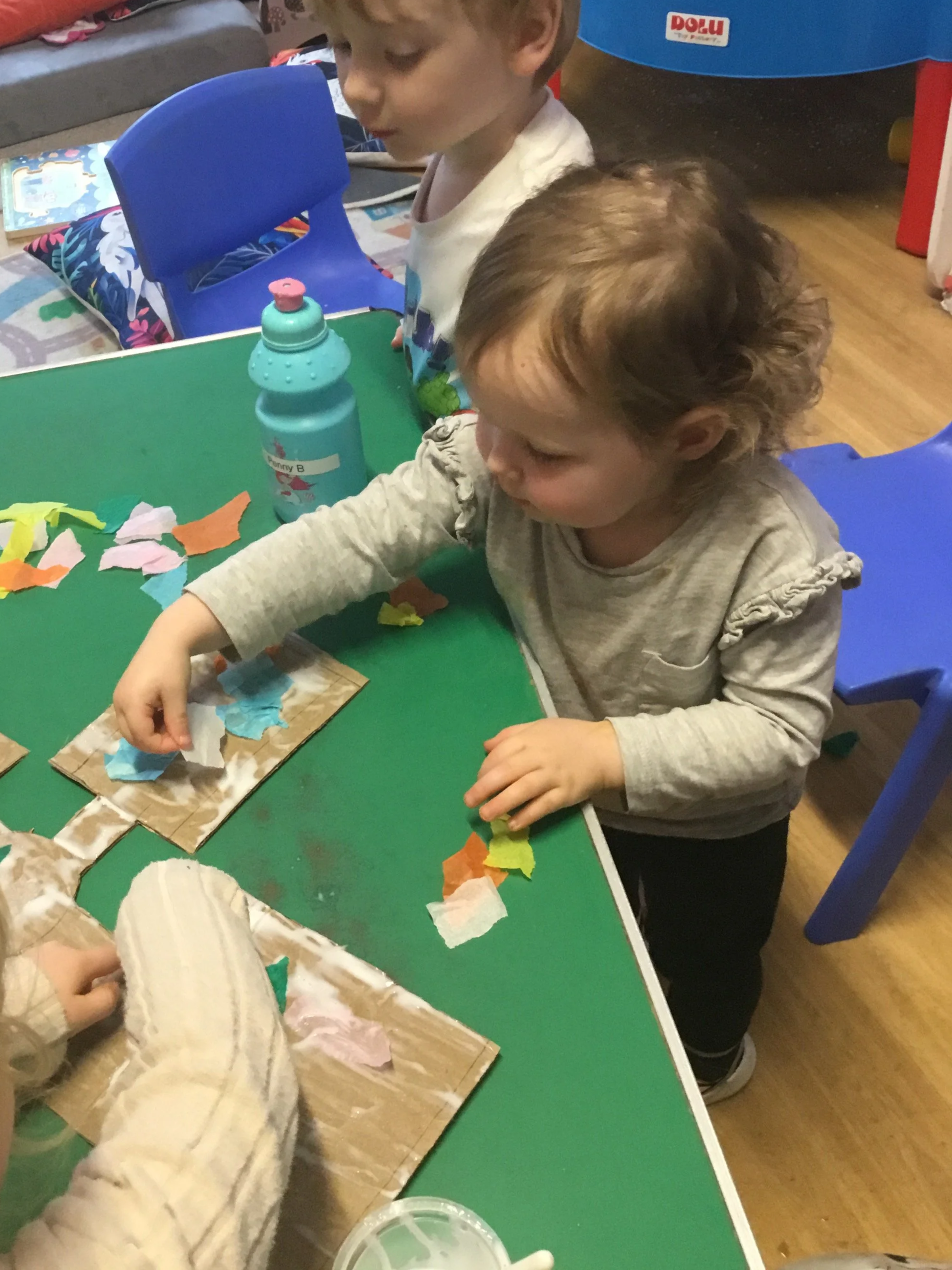 They had to use fine manipulative skills to pick up the paper and place it on the sticky glue.